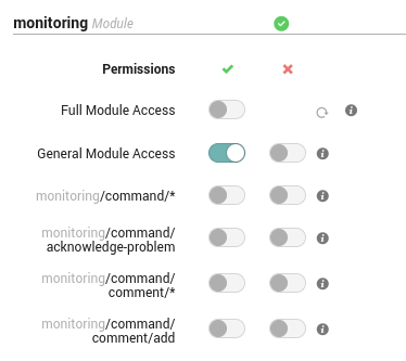 5. Enable the General Module Access for the Monitoring (possibly restricting the hosts visible by the user)